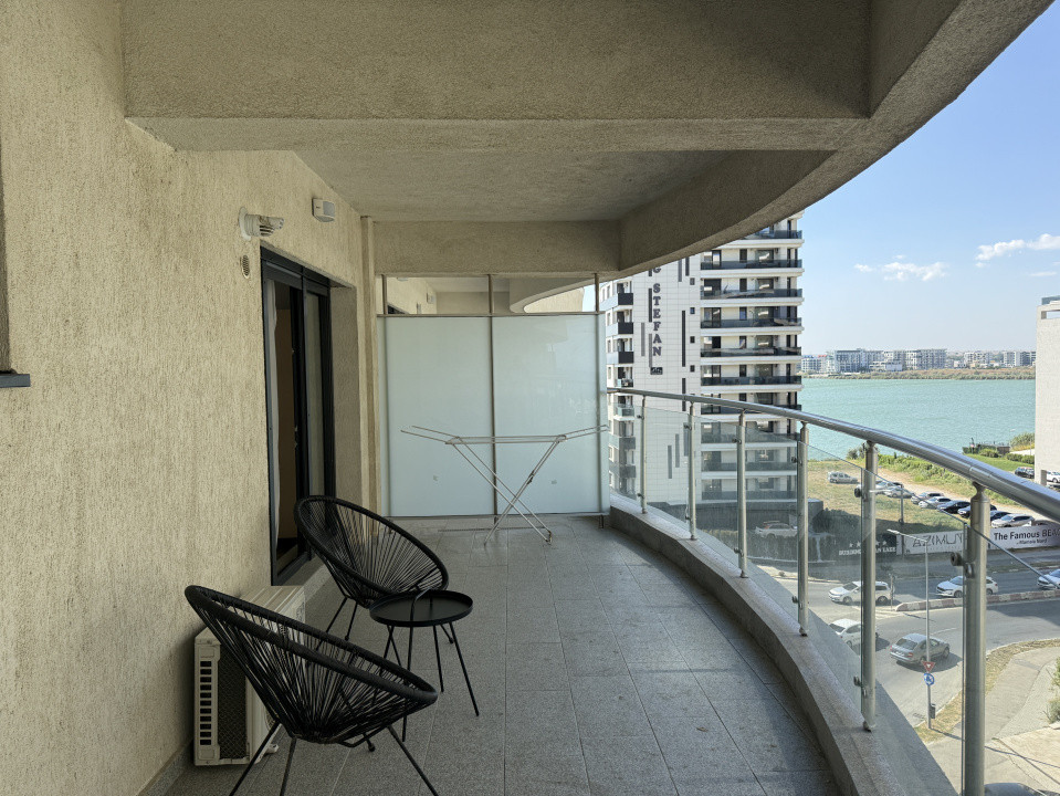 Proprietatea beneficiază de un balcon generos de 17,7mp, perfect pentru momentele de relaxare în aer liber, cu vedere parțială spre mare sau către ambientul modern al complexului.