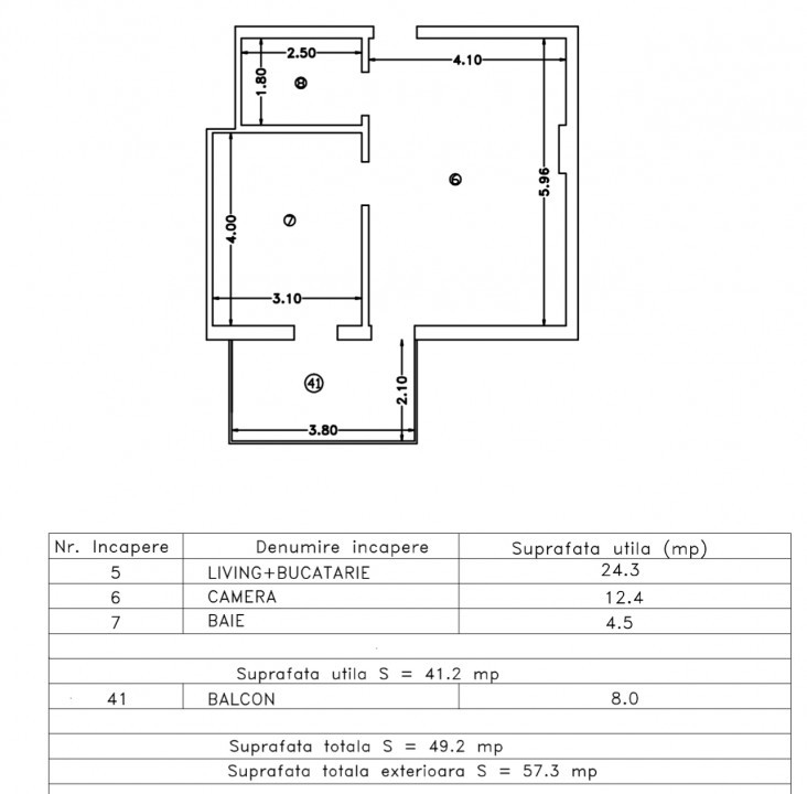 Suprafata construita: 49 mp