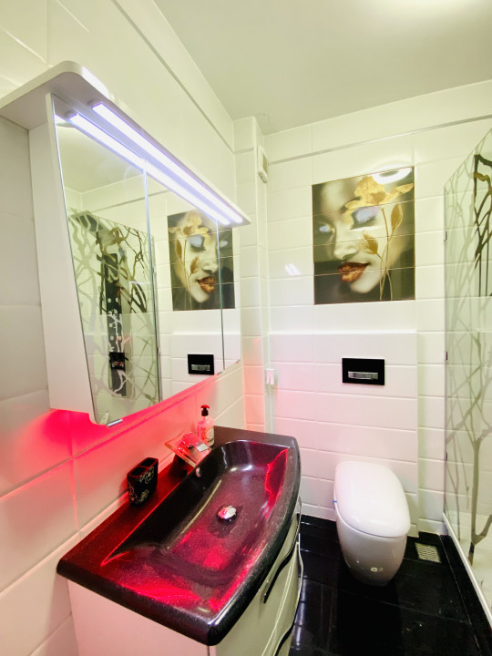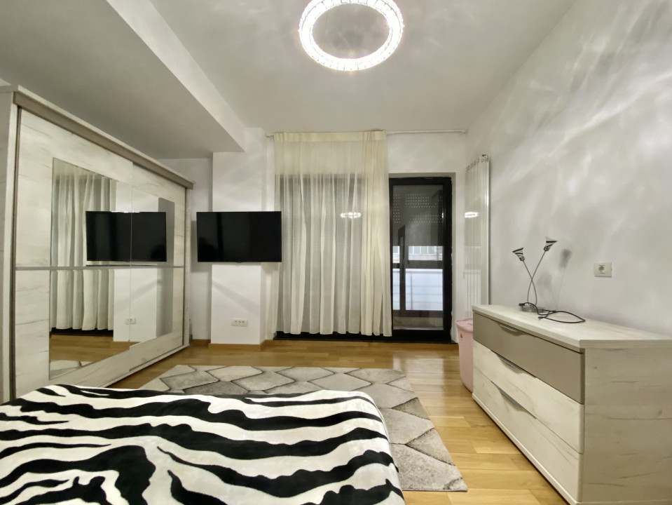 Balconul spațios și obloanele electrice pentru fiecare geam adaugă un plus de intimitate și posibilitatea de a te relaxa în aer liber. Cu dotări moderne, inclusiv televizoare în fiecare cameră și mobilier contemporan, acest apartament reprezintă o alegere excelentă pentru cei care caută confort și funcționalitate.