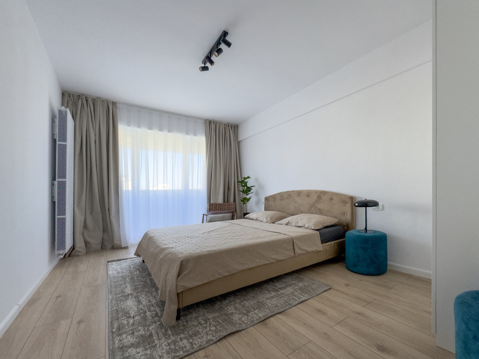 Dormitorul bine luminat natural este refugiul perfect pentru odihnă și relaxare.