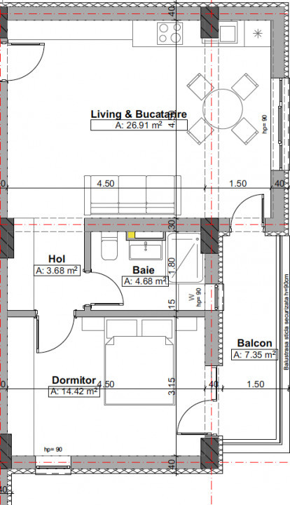 Suprafața balconului: 7,35 mp