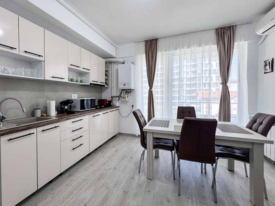 Apartamentul se vinde mobilat si utilat complet, finisat complet, inclusiv cu centrala proprie pe gaz, calorifere si aer conditionat