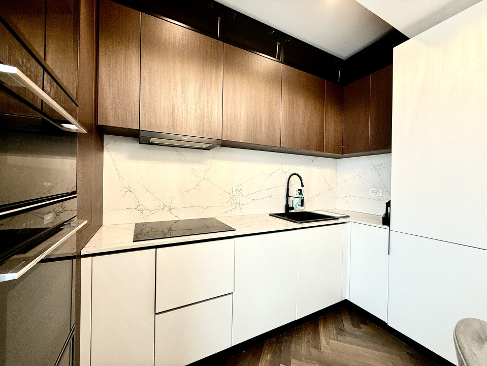 Zona de living este spatioasa si luminoasa, iar bucataria este complet echipata, cu electrocasnice de calitate si blaturi din compozit, ideale pentru un stil de viata practic si elegant.