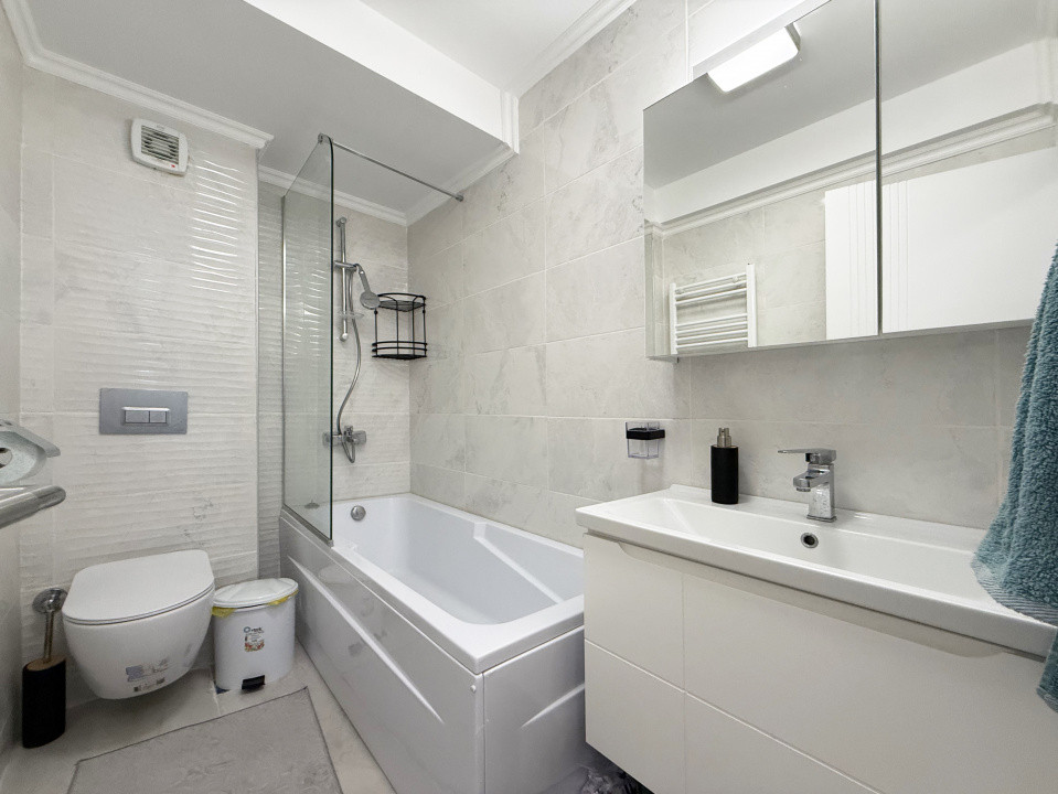 Se oferă spre închiriere un apartament modern cu 3 camere decomandate, situat în stațiunea Mamaia, cu vedere frontală superbă la lac.