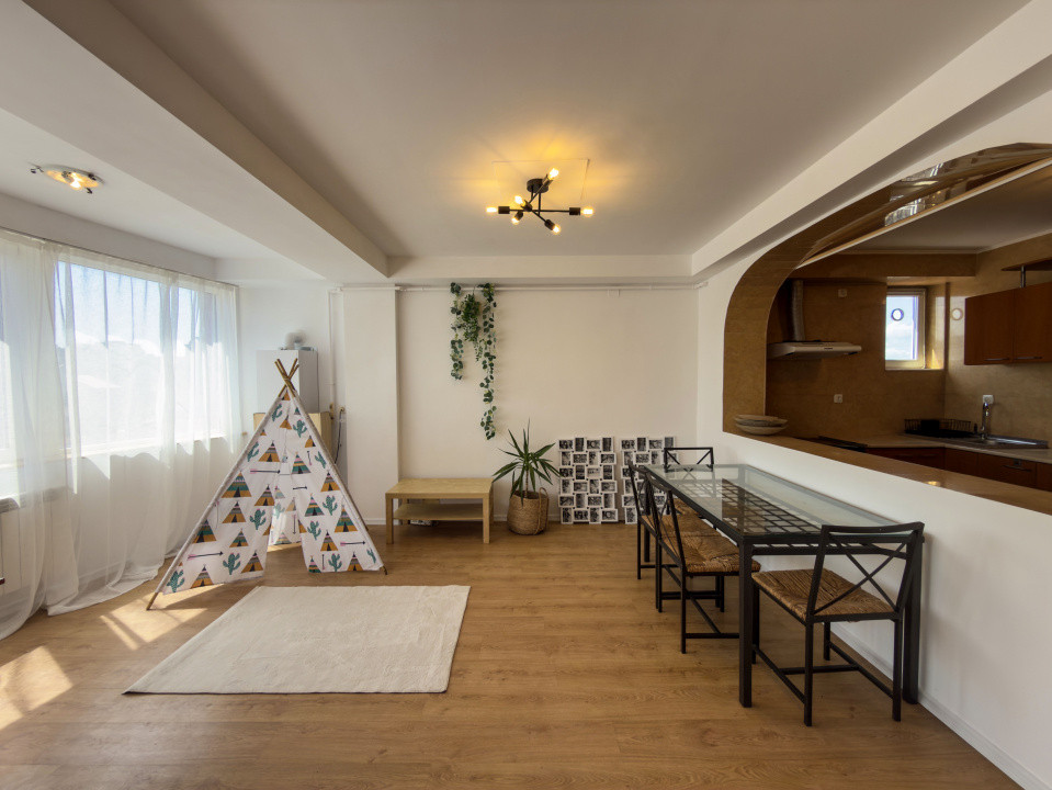 Cu o suprafață utilă generoasă de 87 mp, apartamentul este compartimentat inteligent pentru a răspunde nevoilor unei familii sau ale unui cuplu care își dorește mai mult spațiu. Locuința se închiriază complet mobilată și utilată, fiind pregătită pentru mutare imediată, fără investiții suplimentare.