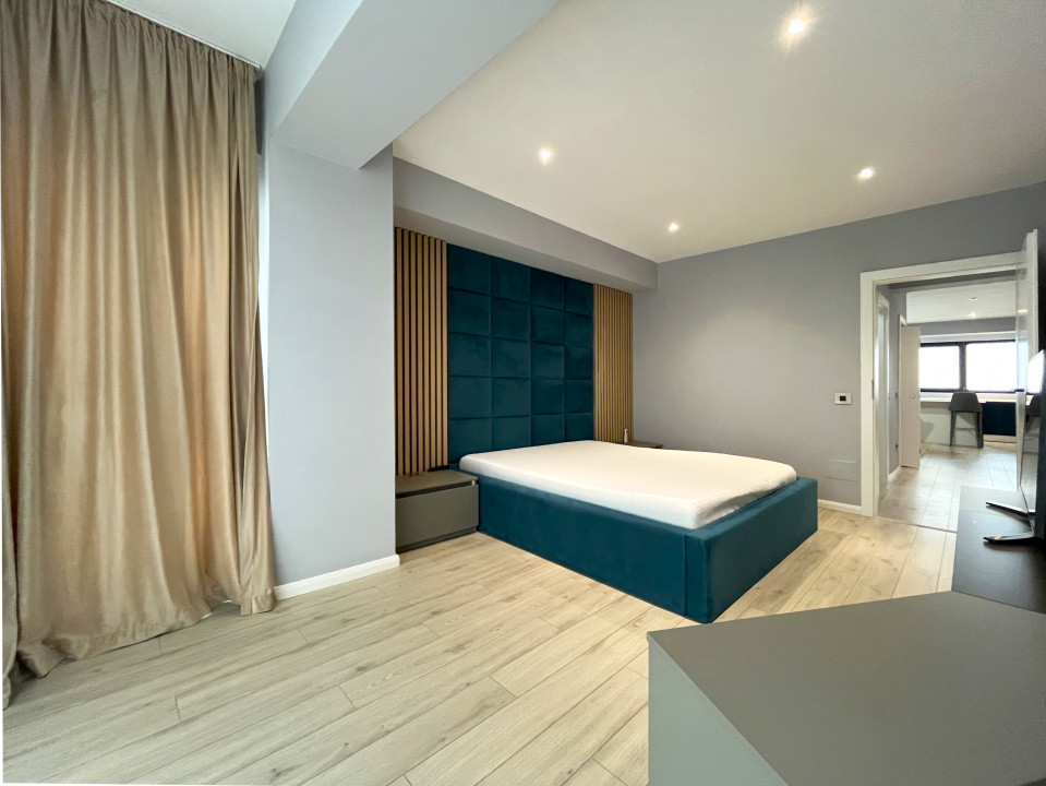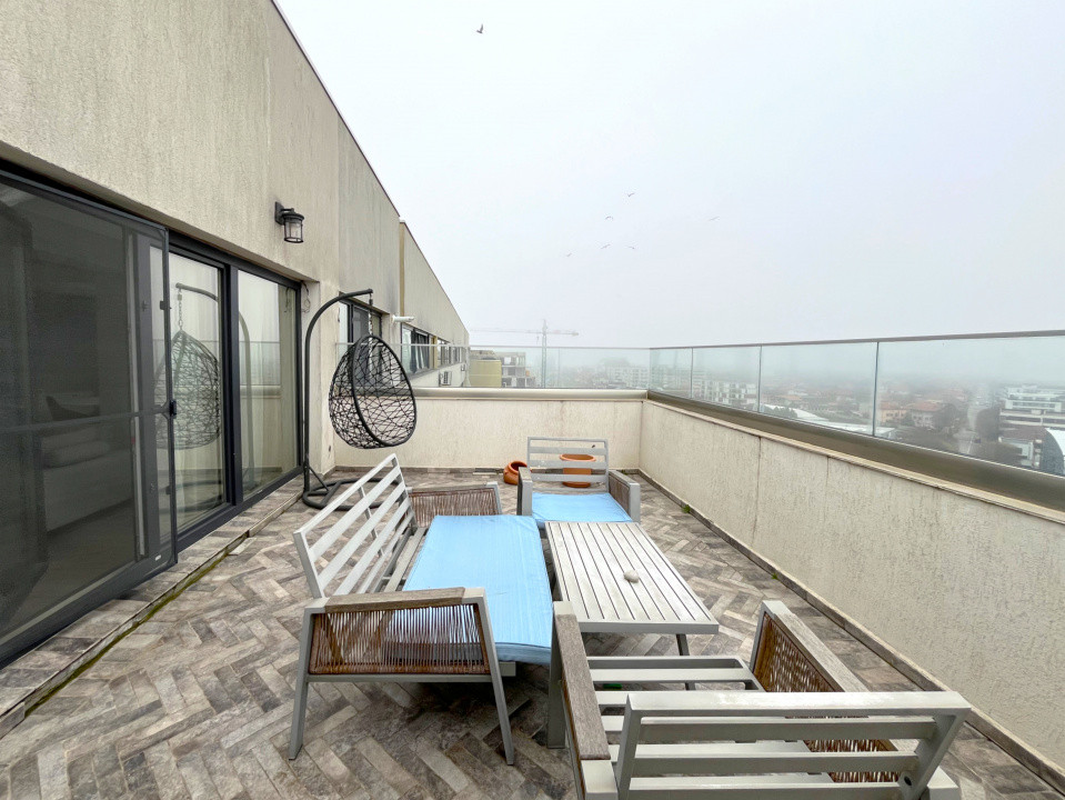 Balconul de 5,11 mp completează foarte bine dormitorul, iar terasa de 20 mp devine un loc unde poți respira după o zi încărcată, fie cu o cafea dimineața, fie cu un apus liniștit seara.