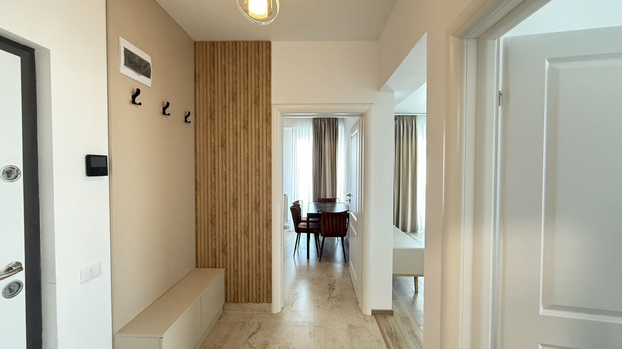 Acest apartament îți oferă tot confortul de care ai nevoie, atât la interior prin calitate amenajării și funcționalității cât și la exterior prin piscina pusă la dispoziție locatarilor, curtea privată cu zona pietonală de promenadă dar și accesul optional(contra cost) la parcarea subterană.