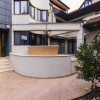 Exterior Premium: Terasa din faศa casei este placatฤ cu travertin, iar curtea este amenajatฤ cu un covor de piatra, excelent ศi cu un design modern.