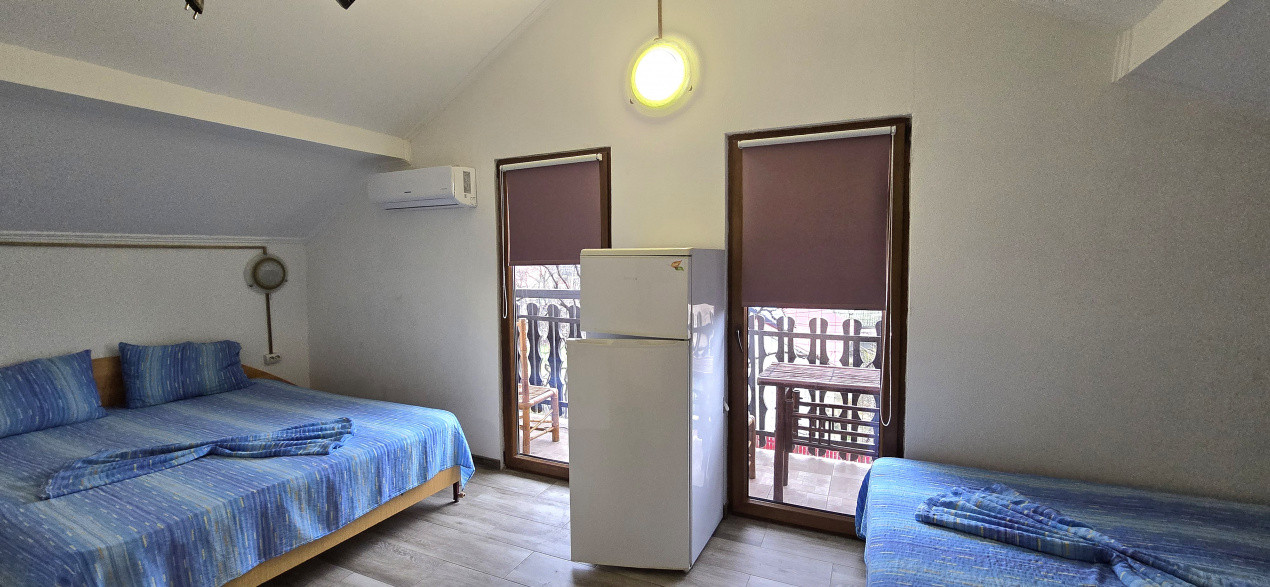 Cu un regim de înălțime P+2, proprietatea dispune de 16 camere, fiecare cu acces la balcoane, oferind lumină, intimitate și o atmosferă caldă, relaxantă. Curtea și terasa completează perfect experiența, fiind spații ideale pentru momentele liniștite ale dimineților de vacanță sau serile târzii de vară.