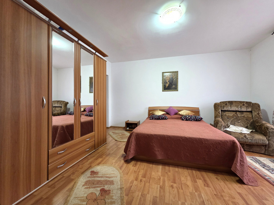 Va prezentam o proprietate deosebita, construita cu simt de raspundere ( structura BCA cu placa de beton peste nivel ), situata intr-o zona linistita, ideala pentru o familie care isi dorește confort, intimitate și functionalitate. Casa este compusa din 3 camere spatioase, dintre care 2 dormitoare ( un dormitor matrimonial cu baie ) racordata la utilitati (apa, electricitate, canalizare la strada). Incalzirea se realizeaza cu ajutorul centralei termice pe lemne ( recent montata, neutilizata ) si calorifere aluminiu, iar pentru apa calda este montat un panou solar.