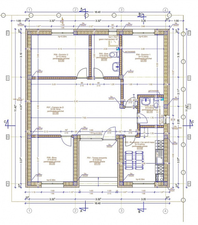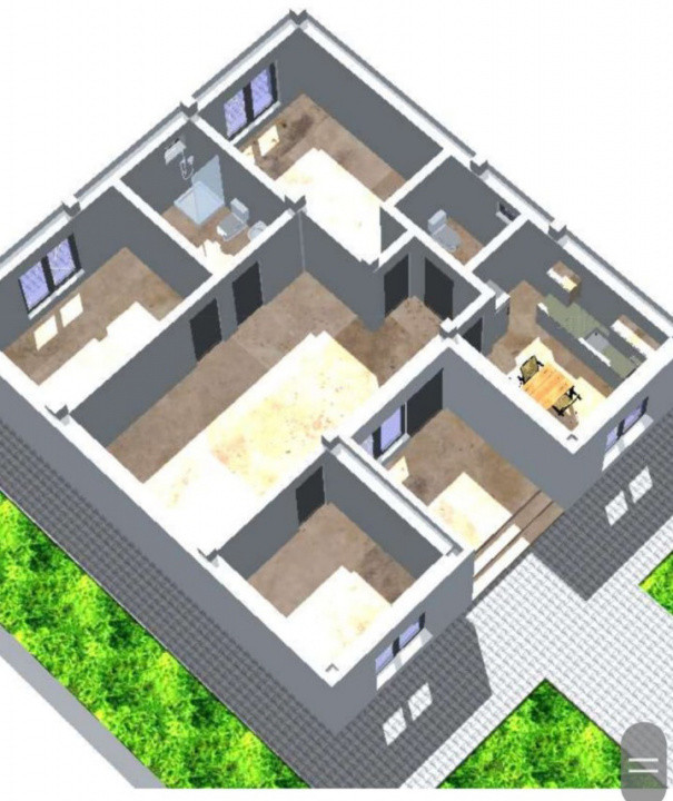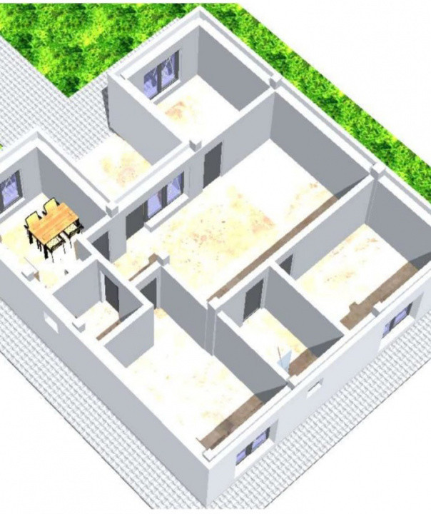 Suprafață totală: 89,9 mp, din care 9 mp terasa acoperita | Dormitoare: 3 | Bai: 2 | Teren: 400 mp