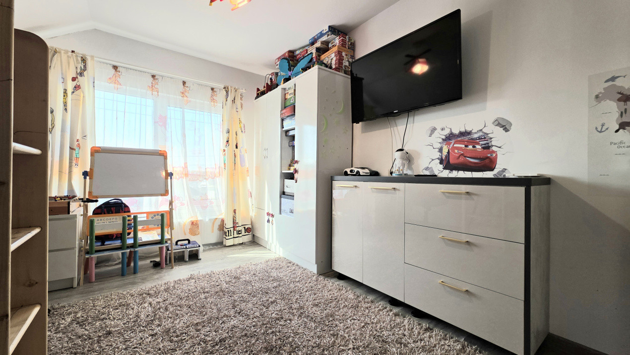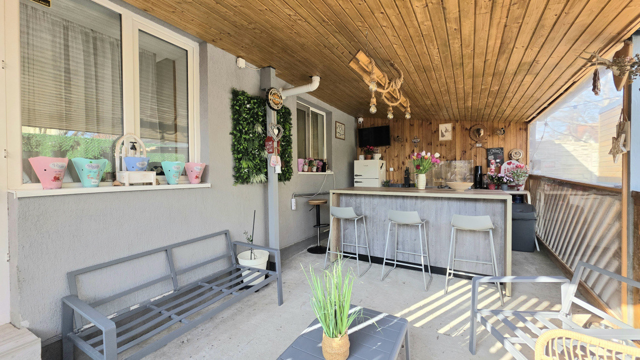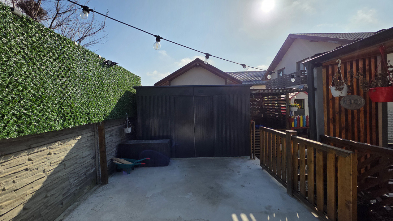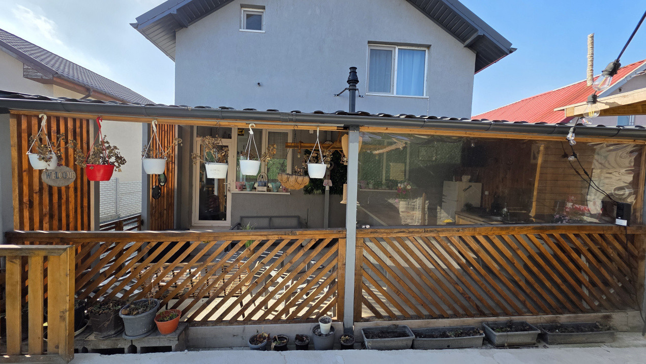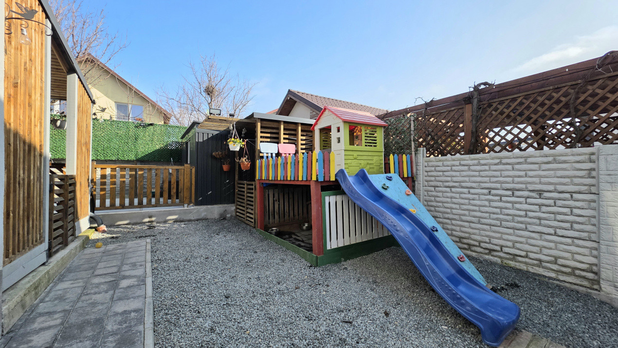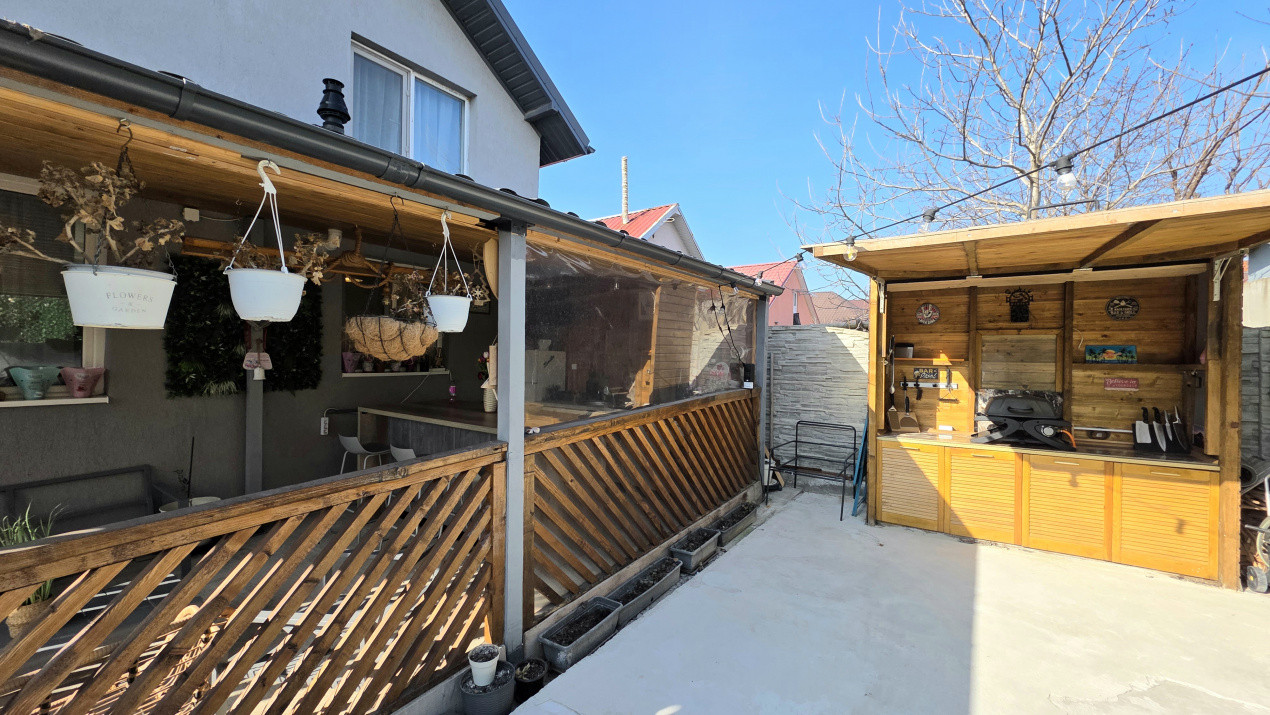 * Curte amenajata: Loc de joaca pentru copii, zona dedicata florilor, parcare cu terasament din pietris si o terasa acoperita dotata cu bucatarie de vara si zona BBQ ā inima petrecerilor in familie;