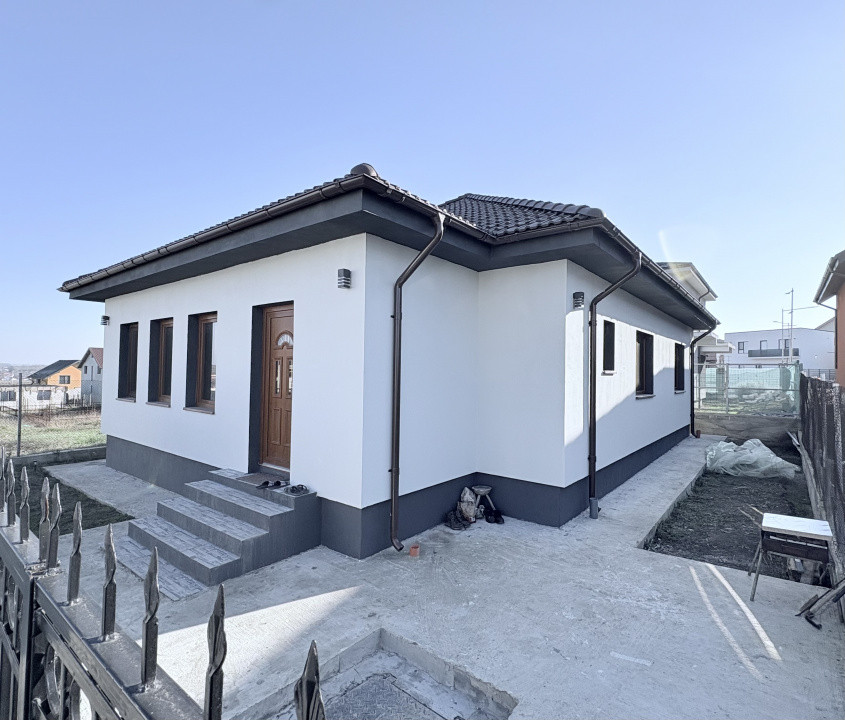Proprietatea de vinde finisata complet cu : gresie, faianta, parchet, tamplarie PVC Salamander, Usi interior, Obiecte sanitare, incalzire in pardoseala, izolatie exterioara cu polistiren de 10cm, acoperis din tigla Bramac.