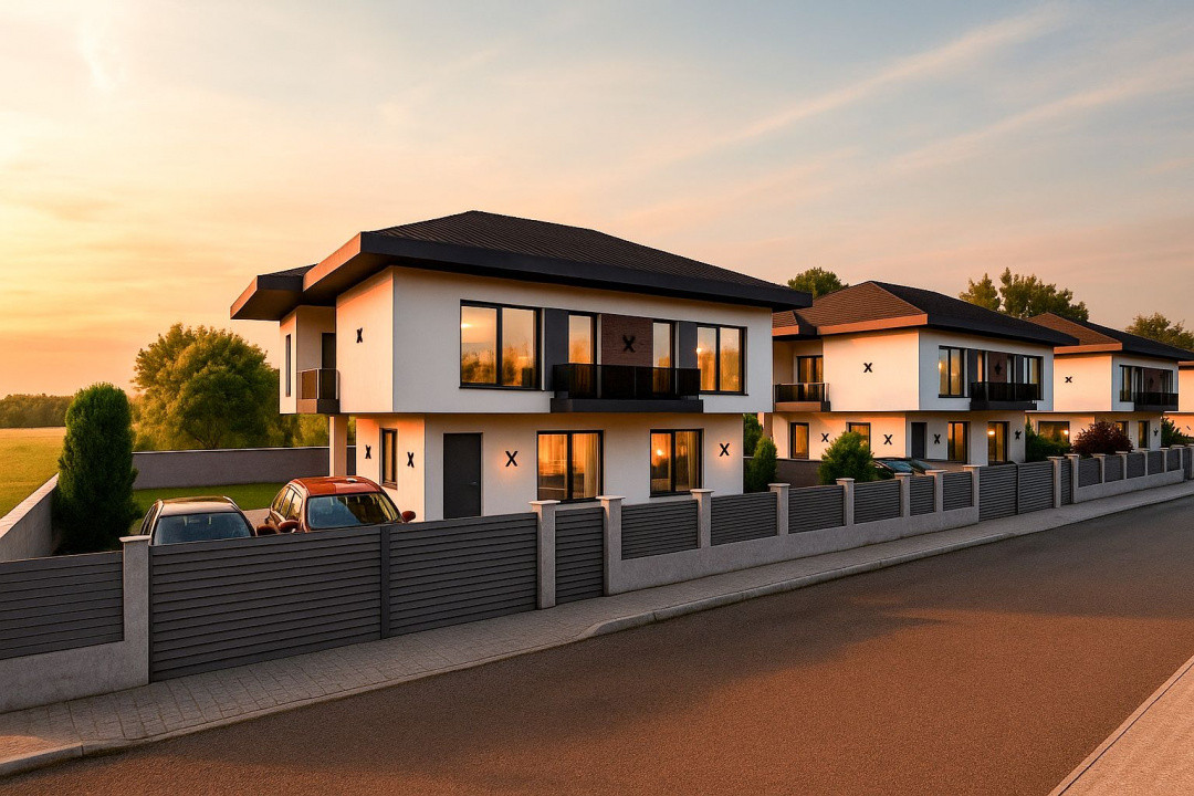 Casă individuală în ansamblu de 4 locuințe situate în Valu lui Traian, str. Complexului, exact in centru pe partea dreapta.