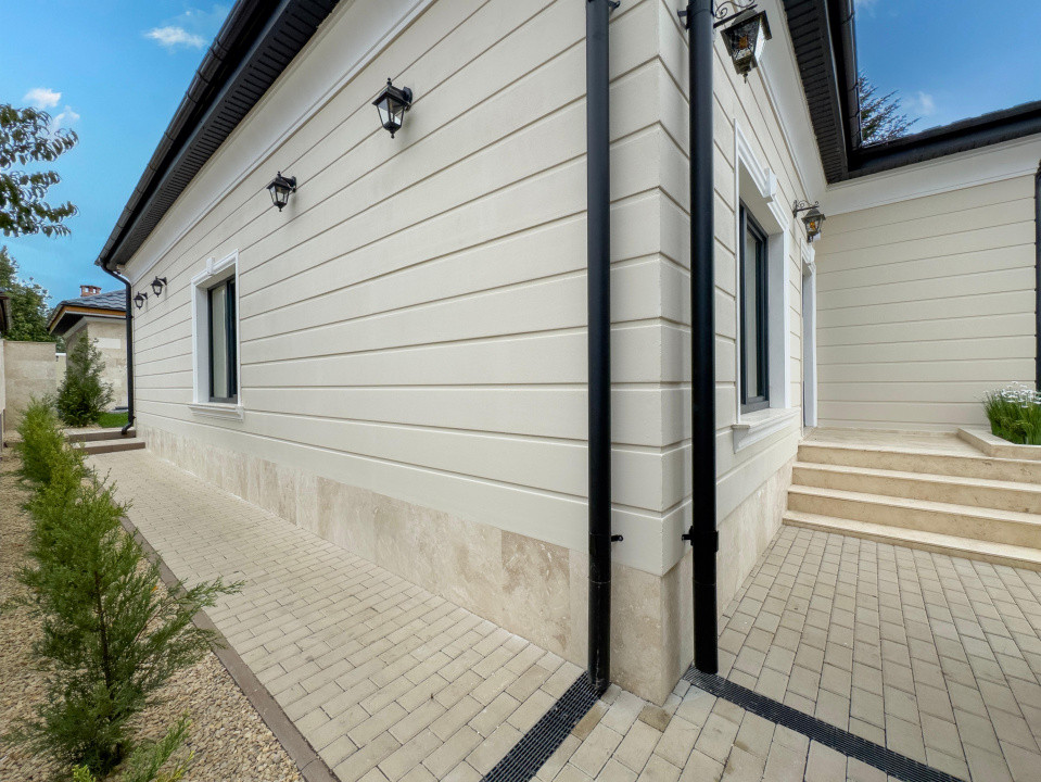 Construcție din BCA, izolată exterior cu polistiren de 10 cm și elemente decorative arhitecturale