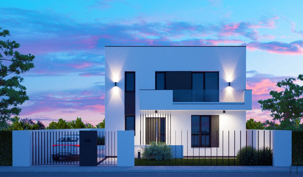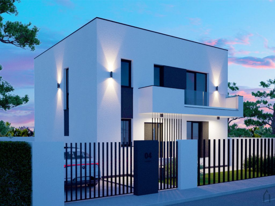 Locuinta are o suprafata de teren de 252mp cu o deschidere de 14ml, suprafata construita de 160mp din care 123mp reprezinta suprafata utila la care se adauga un balcon cu suprafata de 7mp. Casa se preda la ALB ( cu centrala proprie si incalzire in pardoseala ) sau la CHEIE cu finisajele prezentate in randarile imobilului si curtea amenajata peisagistic. Optimizarea spatiului s-a realizat sub indrumarea designerului de interior, rezultand urmatoarea compartimentare: