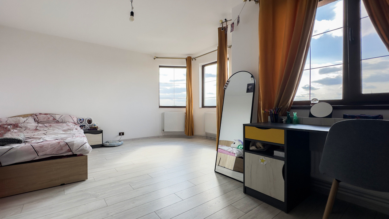 Suprafață totală: 242 mp, din care 186 mp utili + terasa închisă 90 mp | Dormitoare: 4 | Bai: 3 | Teren: 500 mp