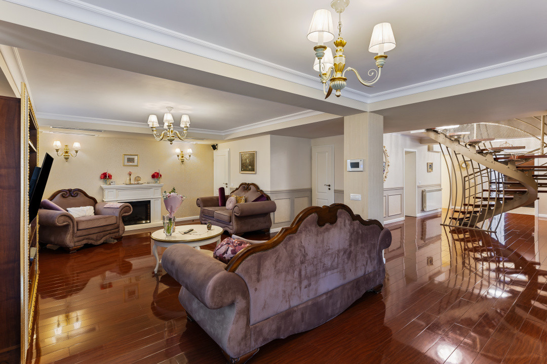 Compartimentare: 4 dormitoare, birou, living generos, cameră de dining, bucătărie închisă, 3 băi + demisol.