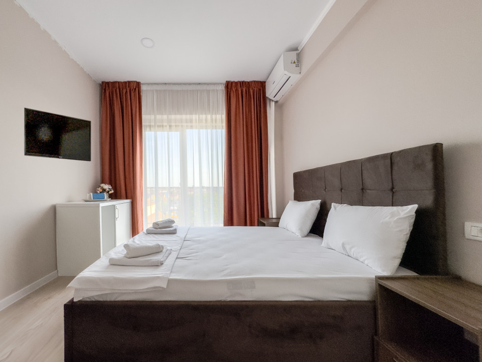 Fiecare cameră este mobilată complet, fiind echipată cu frigider, aer condiționat și alte dotări moderne, pentru a asigura confortul maxim al oaspeților.