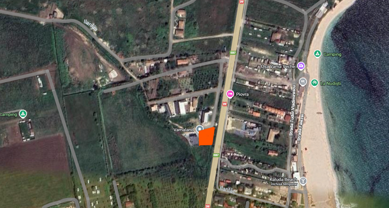 Teren de vânzare în Vama Veche, situat la drumul național, chiar la intrarea în localitate. Suprafață totală 506 mp, cu deschidere de 21,27 m.